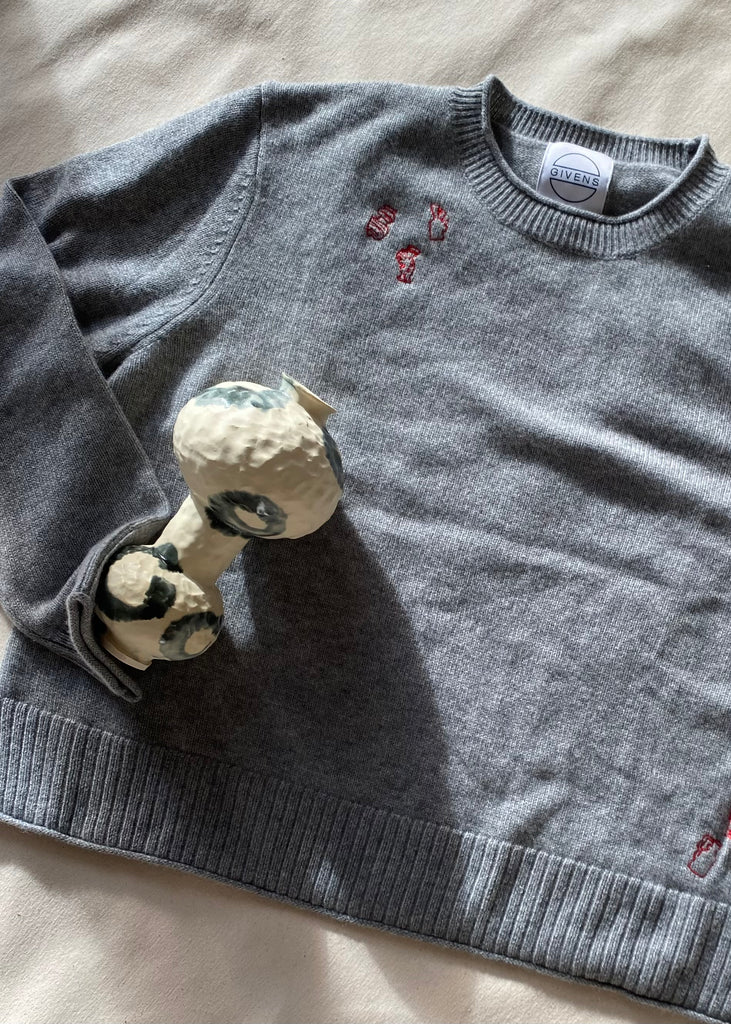 Ohhhh just some doodles of Molly Bernstein's ceramics embroidered on cashmere sweaters!